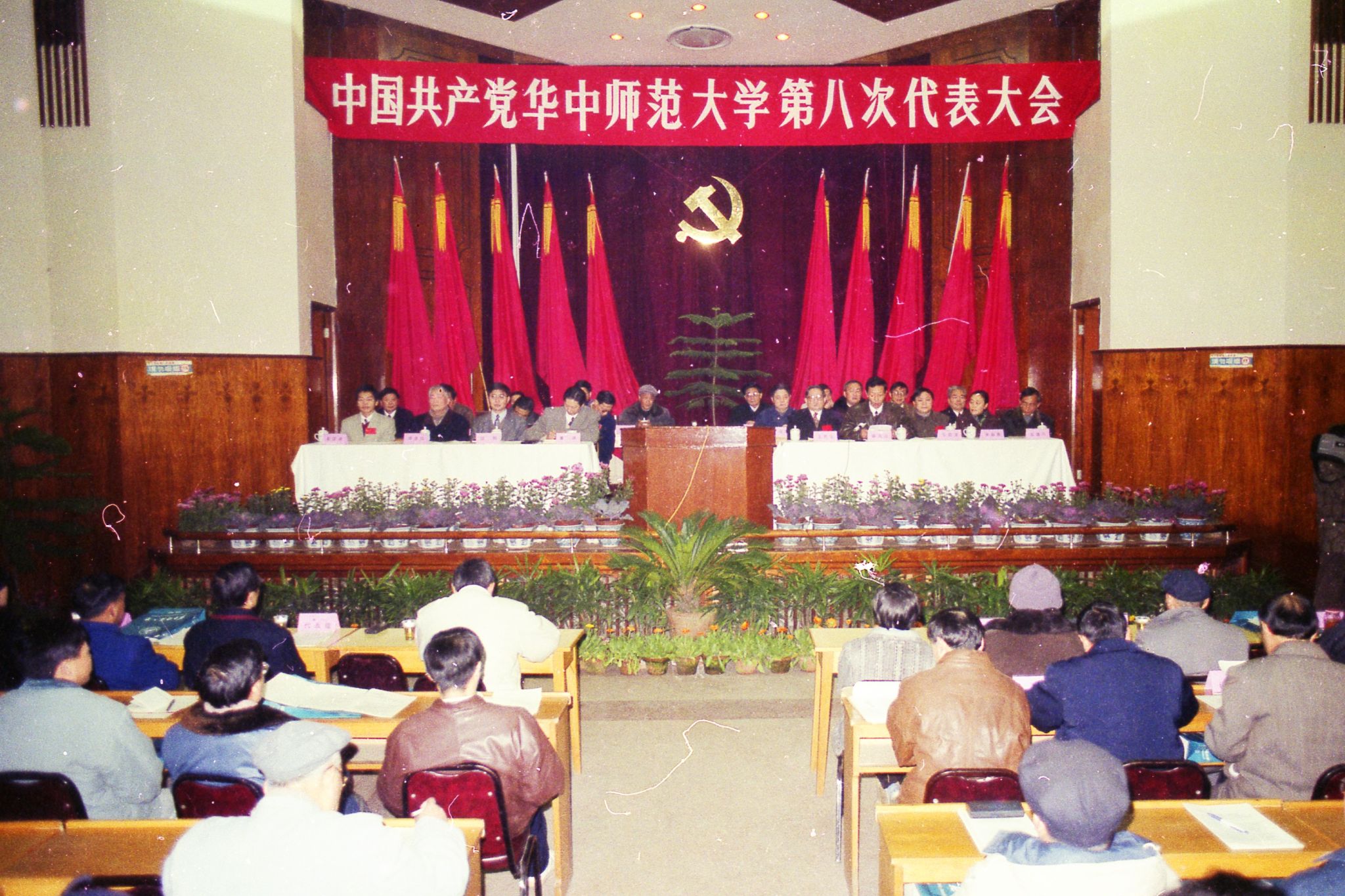 基本情况:出席大会的正式代表268人、列席代表35人,特邀代表23人。大会的主题是:以党的“十五大”精神为指导,高举邓小平理论的伟大旗帜,统一思想,振奋精神,动员全校党员和师生员工,为完成学校“九五”计划,把一个充满生机和活力的华中师范大学带入21世纪而努力奋斗。党委书记晏章万代表第七届党委,作了题为《加强党的建设 促进改革发展 把一个充满生机和活力的华中师范大学带入21世纪》的工作报告。党委副书记、纪委书记戴谱生代表第四届纪律检查委员会,向大会作纪律检查工作报告。大会审议通过了关于第七届党委和第四届纪委工作报告的决议,号召全校党员和师生员工高举邓小平理论伟大旗帜,统一思想,振奋精神,抓住机遇,迎难而上,扎实工作,努力实现学校的“九五”计划,以新的姿态迈入21世纪。大会选举产生了中共华中师范大学第八届委员会,共29名委员;选举产生了中共华中师范大学第五届纪律检查委员会,共11名委员。